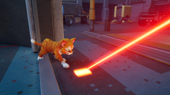 Your trusty laser pointer is the only way to guide a curious cat through a chaotic space station.